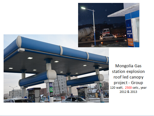 Wildly applied in petrol station, outdoor canopy, factory, retail stores or other places which need anti-corrosion, anti-explosion, dust-proof and water-proof luminaires.